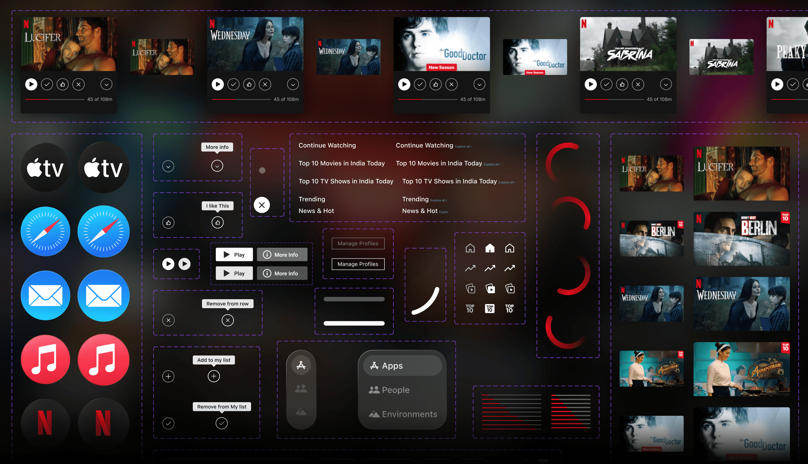 As the demand for immersive entertainment experiences continues to grow, there is a rising interest in integrating popular streaming platforms like Netflix into Extended Reality (XR) environments. XR, encompassing Virtual Reality (VR) and Augmented Reality (AR), offers unique opportunities to transform traditional content consumption into interactive and immersive experiences. We designed Netflix UI for Apple Vision Pro